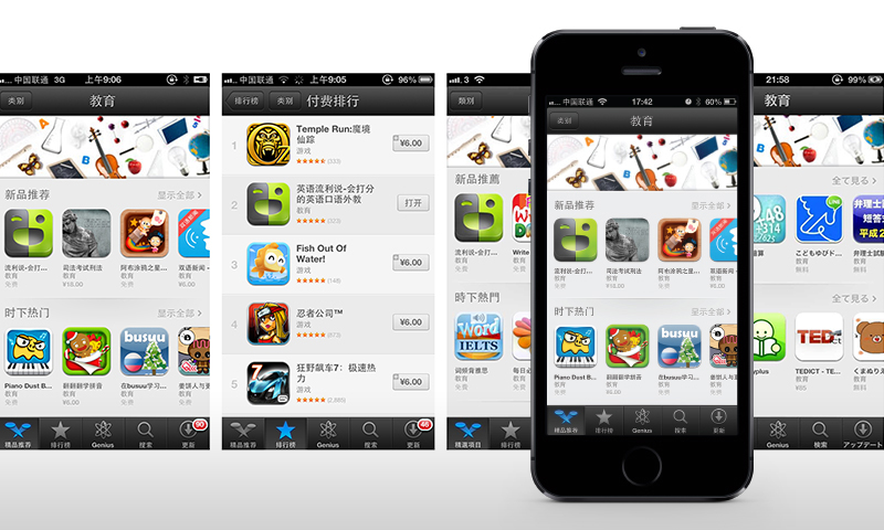 2013年 2月,iOS 获得 App Store 中国大陆、日本、台湾、香港的精品推荐。